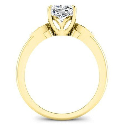 Be Delighted With This Single Shank Engagement Ring With Leaf Style Side Stones In Between The Center Stone Of Your Selection. This Is A One Of A Kind Engagement Ring Design That Is So Captivating And Refreshing To Look At! Be One With Nature With This Design And Select From 14k, 18k Gold Or Platinum.