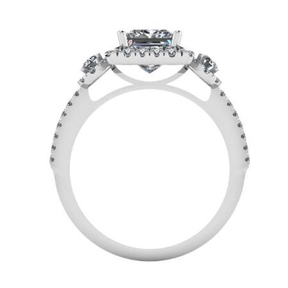 This Three Stone Halo Engagement Ring is a breathtaking testament to your love, designed to be cherished for a lifetime.