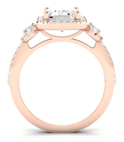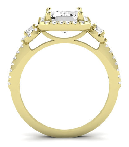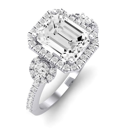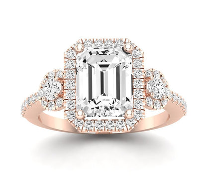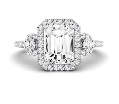 This Three Stone Halo Engagement Ring is a breathtaking testament to your love, designed to be cherished for a lifetime.