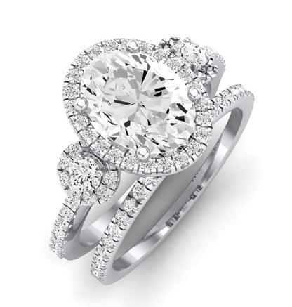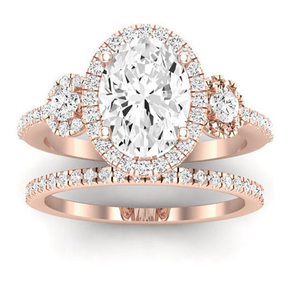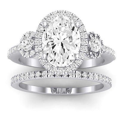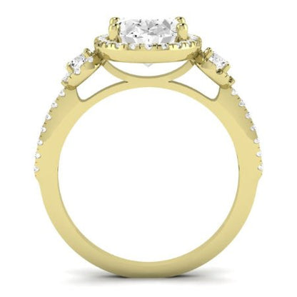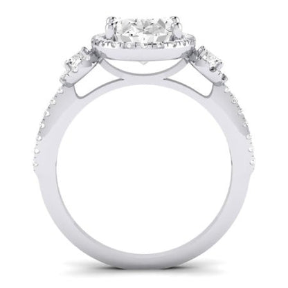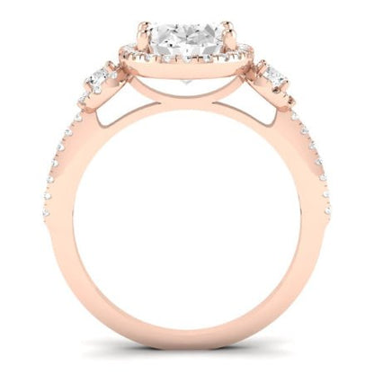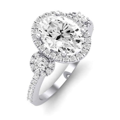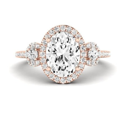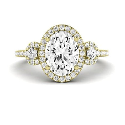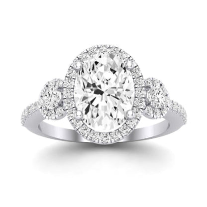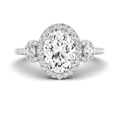 This Three Stone Halo Engagement Ring is a breathtaking testament to your love, designed to be cherished for a lifetime.