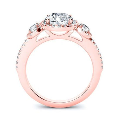 This Three Stone Halo Engagement Ring is a breathtaking testament to your love, designed to be cherished for a lifetime.