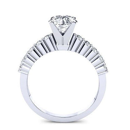 • Shared Prong Side Stones: A distinctive design element that enhances the ring's overall brilliance and creates a sense of continuity.