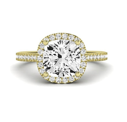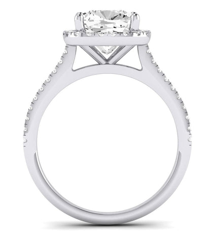 Capture her heart with this exquisitely crafted engagement ring, a timeless embodiment of love and commitment. This ring isn't just a piece of jewelry; it's a symbol of your unique love story, designed to be cherished for a lifetime. The classic halo design beautifully showcases the center stone, while the delicate pave side stones add an extra touch of brilliance, creating a symphony of light that will mesmerize and enchant.