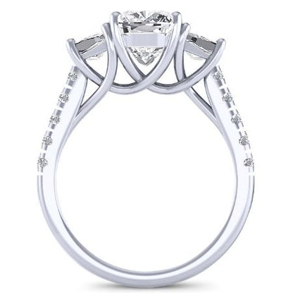 Celebrate your past, present, and future with this elegant Three-Stone Engagement Ring. Featuring a prominent center stone flanked by two equally stunning side stones, this ring embodies the enduring beauty of your love story.