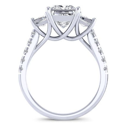 Celebrate your past, present, and future with this elegant Three-Stone Engagement Ring. Featuring a prominent center stone flanked by two equally stunning side stones, this ring embodies the enduring beauty of your love story.