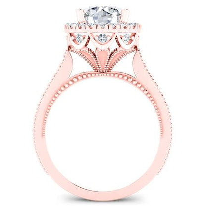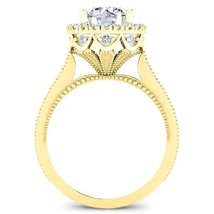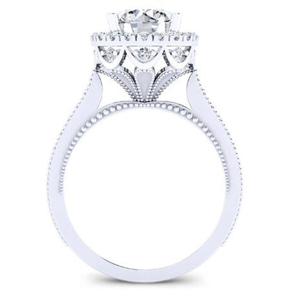 Embrace enduring romance with this captivating Vintage Halo Engagement Ring. Featuring a stunning center stone embraced by a delicate halo, this ring is designed to symbolize your everlasting love.