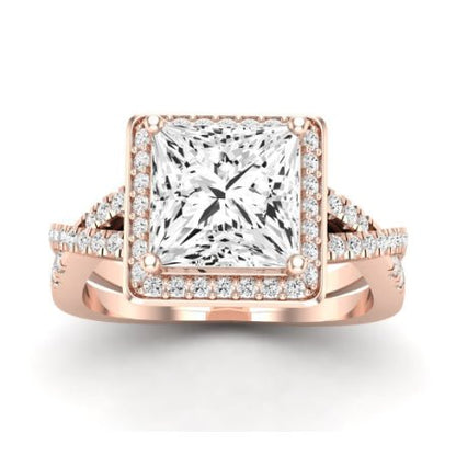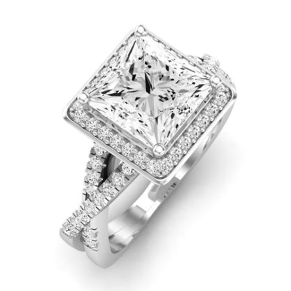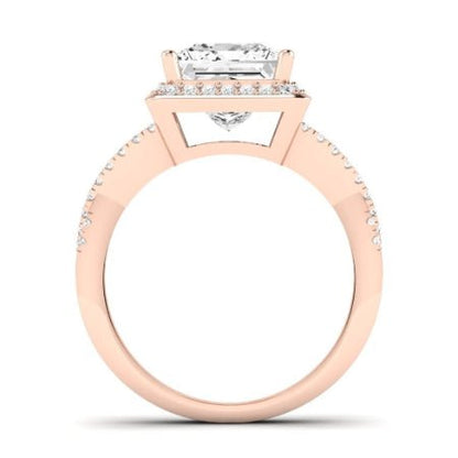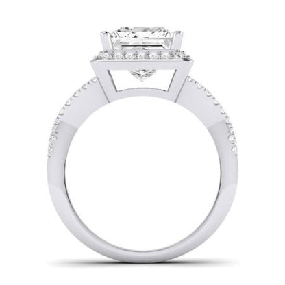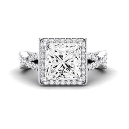 This ring embodies modern elegance with its clean lines and sophisticated silhouette. The halo setting enhances the brilliance of the included center stone, creating a captivating sparkle.