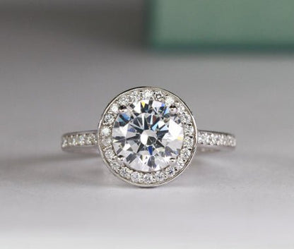 This Classic Halo Engagement Ring is designed to captivate and endure, a perfect testament to your everlasting commitment.