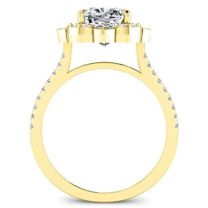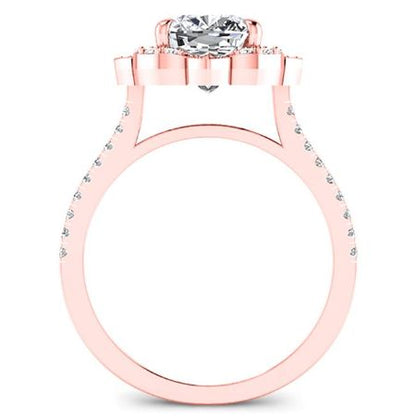 Propose With This Engagement Ring To Her And Get Her Sweet \yes\. This Engagement Ring Is Has A Floral Halo Style Which Consists For Round Shape Side Stones. Lines Of Round Shape Sides Stones In Pave Set Flows Along The Shank. You Can Select Your Choice Of Center Stone Shape And Size For This Halo Engagement Ring.