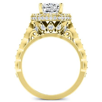 This Is The Ring You Would Want To Get If You Are Looking For A Combination Of Vintage And Bold. This Ring Has So Many Features We Do Not Know Where To Begin! To Start Off, The Shank Of This Ring Has A Row Of Kite Shape With Round Stone Set In The Middle Of Each Shape. On The Halo, You Will Find More Round Shape Stone From The Top All The Way To The Side Of The Halo And Under The Halo You Will Find More Surprises As You Will See In It More Kite Shape Accent With Round Shape Stone Set In The Middle Of It