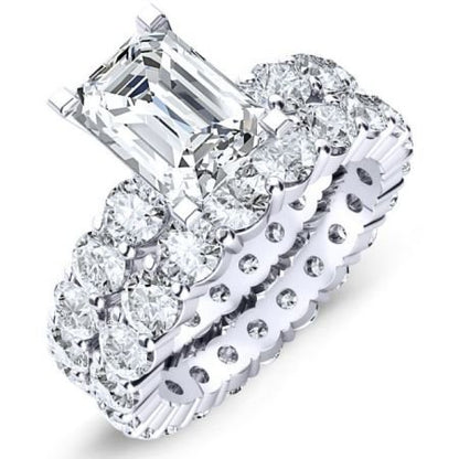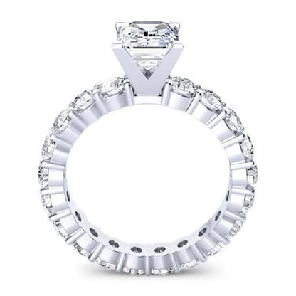 This Gorgeous Eternity Ring Design Is Such A Brilliant Creation. Be Amazed By The Amount Of Shine The Emerald Side Stones Add To This Design. Pick Your Center Stone Shape And Size And Get This Ring Shipped To You Today.