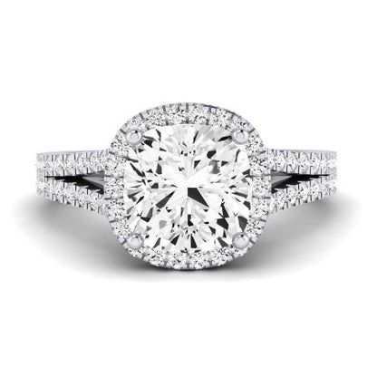 • The split shank is a distinctive design element where the band of the ring splits into two separate strands as it approaches the halo. This creates a unique and visually appealing look, adding a touch of modern elegance to the classic halo design. The split shank also allows for more intricate detailing and can further enhance the overall sparkle of the ring.
