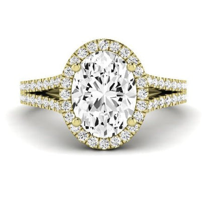 Capture the essence of timeless romance with this breathtaking classic halo engagement ring. A masterpiece of design, this ring showcases your chosen gemstone in a radiant embrace of light, further elevated by a sophisticated split shank.