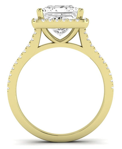 • The pavé setting involves closely setting small gems along the halo and often down the shank. This creates a continuous surface of sparkle, adding an extra layer of luxury and sophistication. The pavé setting enhances the brilliance of the center stone and adds an overall glamorous touch.