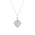 A Vintage Pendant Necklace Is A Dream! This Vintage Pendant Necklace Is Design With Sophistication And Grace. It Is A Halo Vintage Style With A Line Of Round Shape Side Stones Around The Princess Center Stone. The Rolo Chain In This Necklace Is Included For Free. Just Select Your Center Stone Size And You Are All Set. This product has been clarity enhanced using fracture filling and/or laser method.