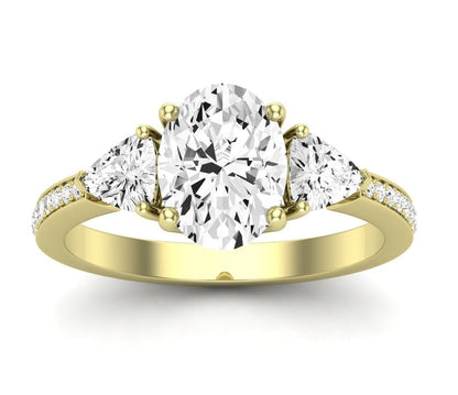 The secure prong setting showcases the included center stone and shoulder gems, allowing them to capture and reflect light beautifully.