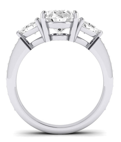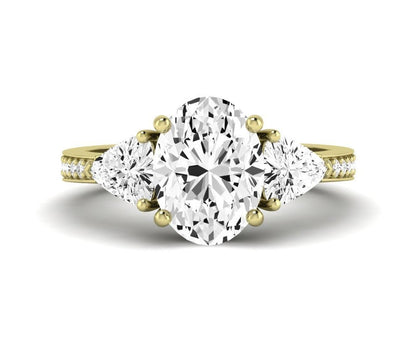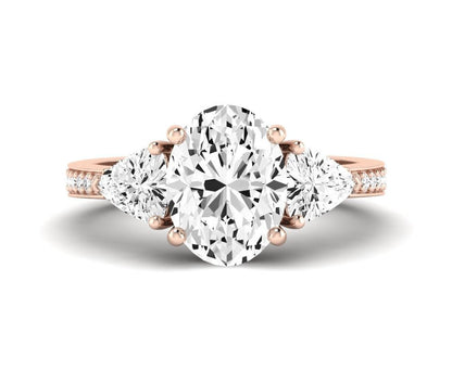 Celebrate your journey with the striking Modern Three-Stone Engagement Ring. This contemporary design symbolizes your past, present, and future, with clean lines and a brilliant display of light.