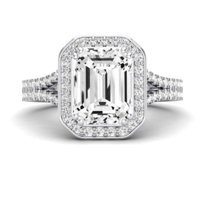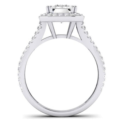 This exquisite engagement ring is a celebration of modern elegance, designed to capture her heart and symbolize your everlasting love. Its contemporary halo design and delicate details create a piece that's both sophisticated and timeless.