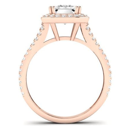 Imagine the sparkle in her eyes as she beholds this ring, a testament to your unique bond. The meticulously crafted design, with its pave-set side stones and thread and grain set halo, radiates brilliance from every angle. The petite profile and Y shank add a touch of contemporary flair, making this ring a true statement of modern love.