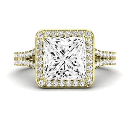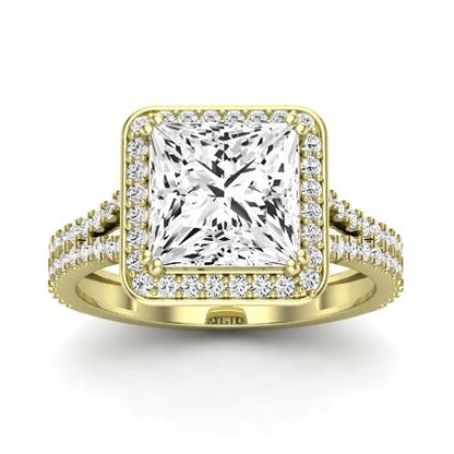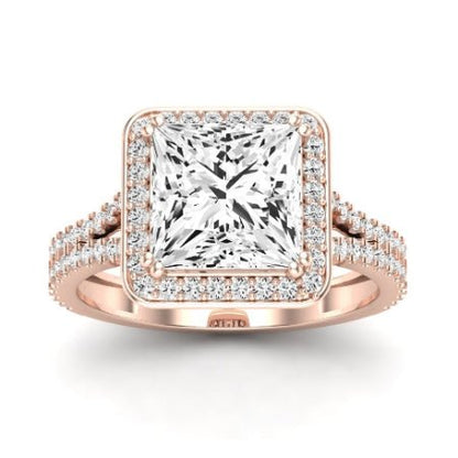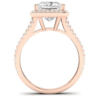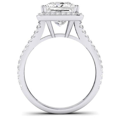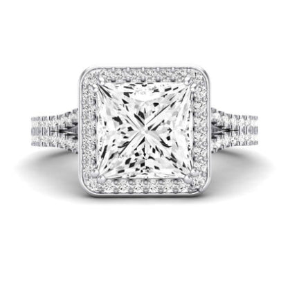 Imagine the sparkle in her eyes as she beholds this ring, a testament to your unique bond. The meticulously crafted design, with its pave-set side stones and thread and grain set halo, radiates brilliance from every angle. The petite profile and Y shank add a touch of contemporary flair, making this ring a true statement of modern love.