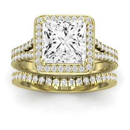 • A Symphony of Light: The halo setting, meticulously adorned with thread and grain set stones, encircles the center gem in a breathtaking display of light. The pave-set side stones further enhance the brilliance, creating a dazzling spectacle that will leave her breathless.