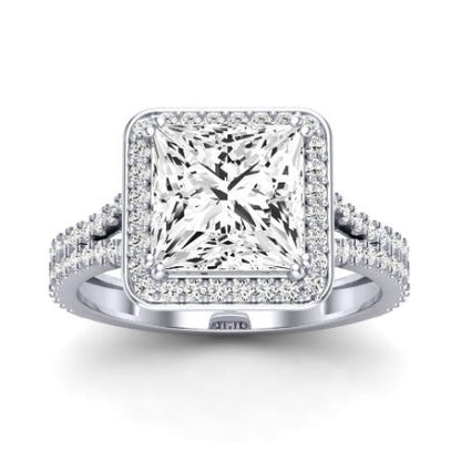 This exquisite engagement ring is a celebration of modern elegance, designed to capture her heart and symbolize your everlasting love. Its contemporary halo design and delicate details create a piece that's both sophisticated and timeless.