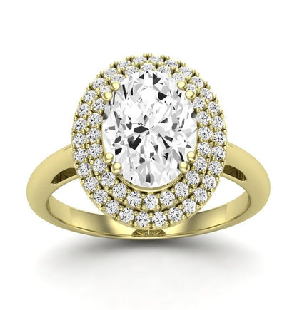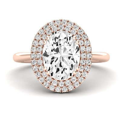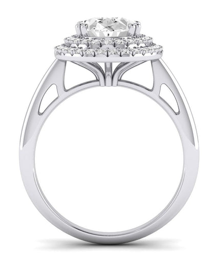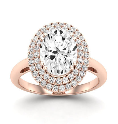 The plain petite shank provides a sleek and understated backdrop, allowing the double halo to take center stage. This design balances modern glamour with timeless elegance.