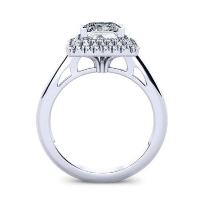 Dazzle her with the Contemporary Double Halo Engagement Ring, a modern masterpiece designed to capture the brilliance of your love. This stunning ring showcases a breathtaking center gem embraced by not one, but two halos of shimmering stones, creating an unparalleled display of light and fire.