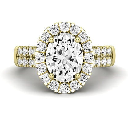 Illuminate your love story with this stunning Classic Halo Engagement Ring. This design, featuring a central gem encircled by a halo of brilliance, creates a captivating display of light and sparkle.