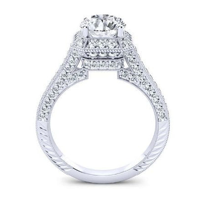 Capture a moment of forever with this stunning Vintage Halo engagement ring. Designed with intricate details and a classic silhouette, it's the perfect symbol of your enduring love.