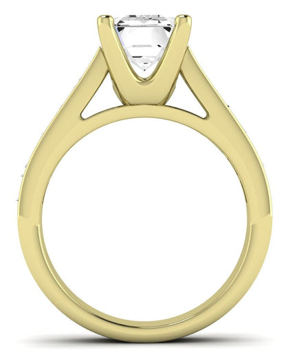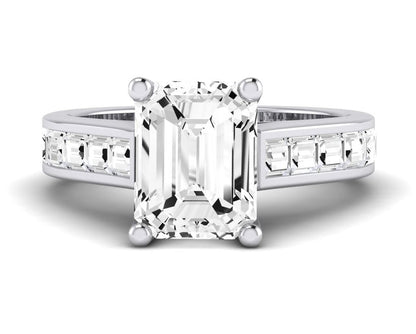 • Channel Set Side Stones: The channel setting provides a sleek and secure way to showcase the side stones, creating a continuous line of brilliance that complements the center gem.